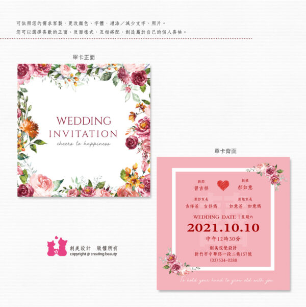 .可以選擇喜歡的正面、反面樣式,互相搭配,創造屬於自己的個人喜帖