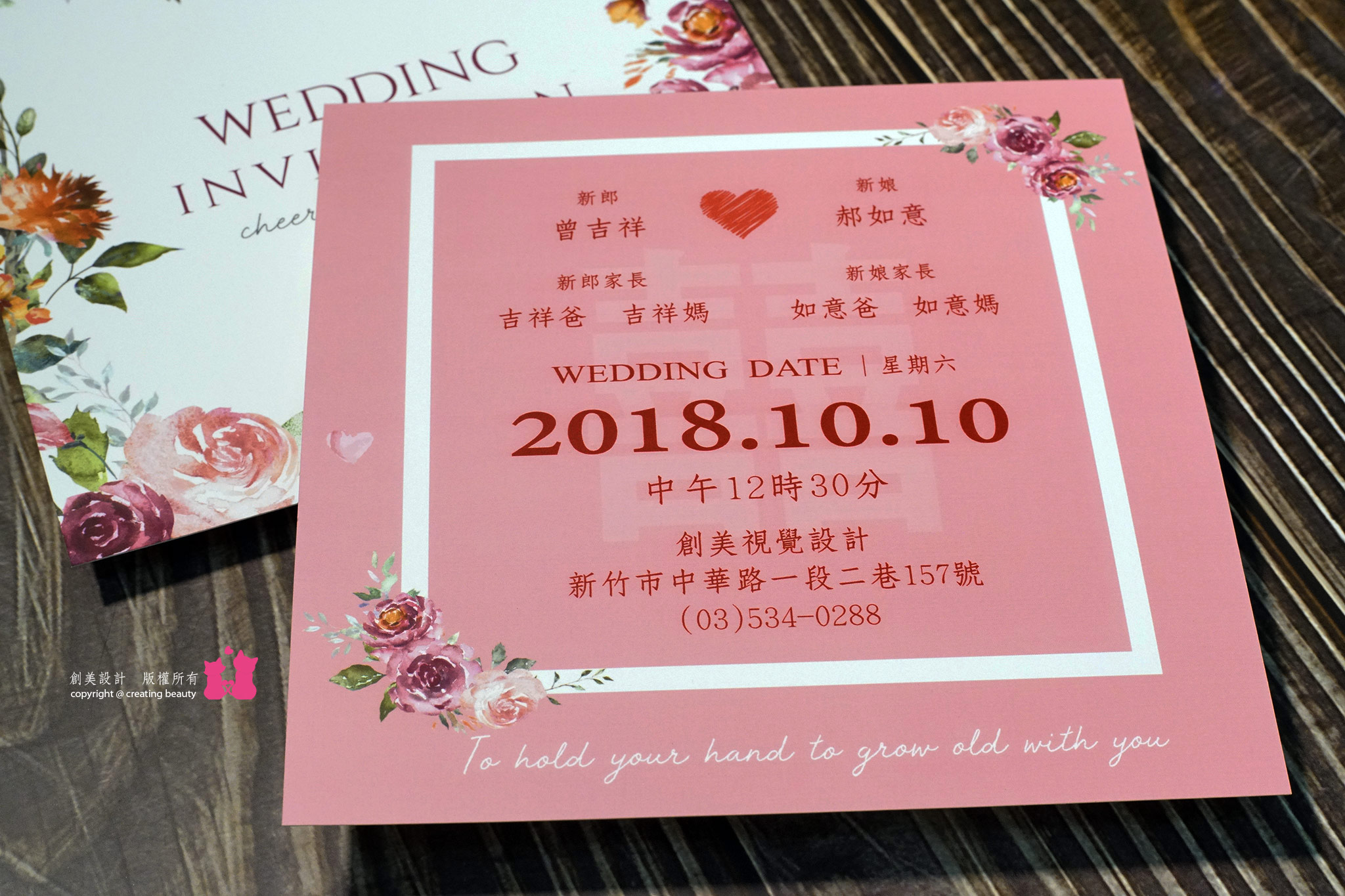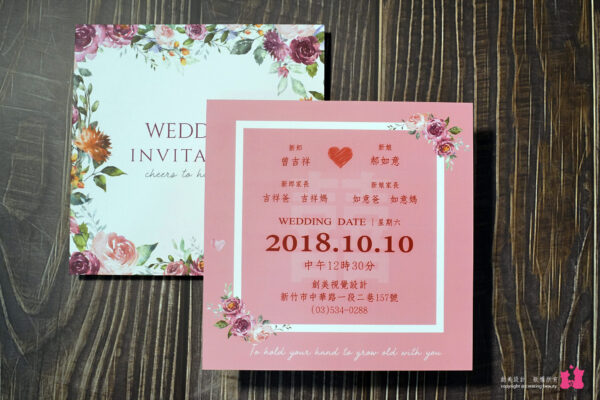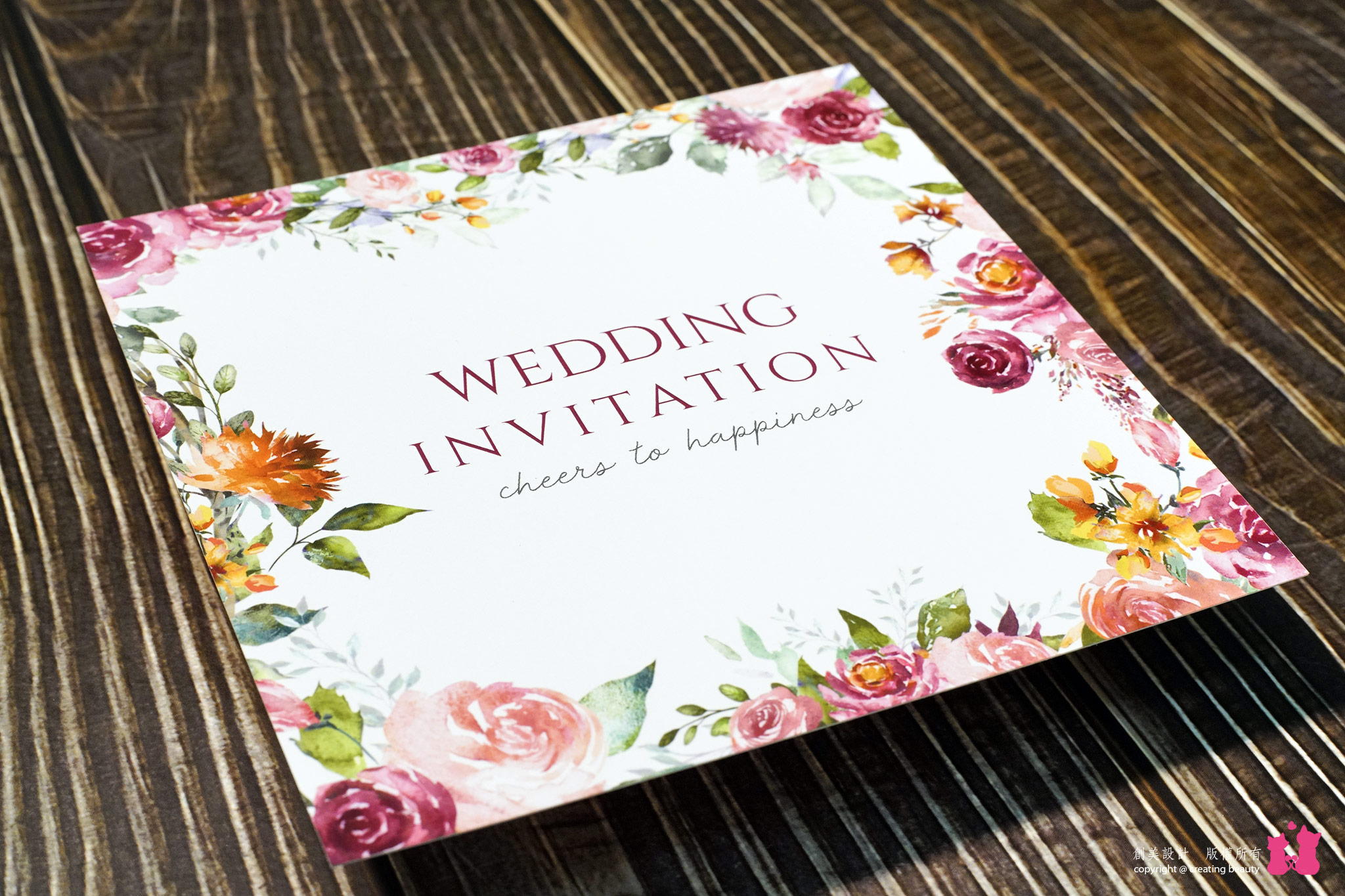 喜帖尺寸:15.5×15.5公分。 單卡。